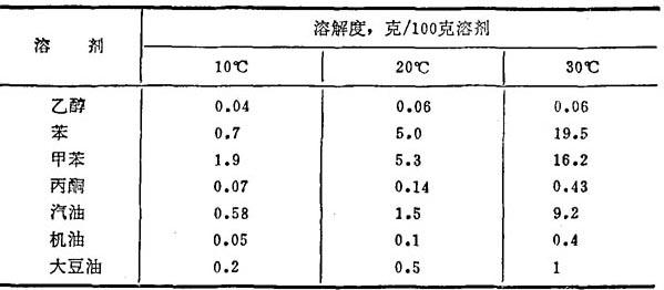 【释文】: 制法 由硫代二丙酸与十八醇酯化而得。 性质 白色结晶粉末或鳞片状物。分子量683.18。灰分<0.01%。挥发物<0.1%。皂化值160~170。酸值<0.05。相对密度1.027。熔点64.5~67.5℃。蒸气压1毫米汞柱(250℃),10毫米汞柱(280℃),30毫米汞柱(300℃)。不溶于水,在部分溶剂中的溶解度见表4-19。 表4-19 硫代二丙酸二(十八酯)的溶解度