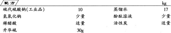 (1)化料 取蒸馏水16kg放入不锈钢桶中,加热至65℃,在搅拌下加入硫代硫酸钠10kg,使其全部溶解。温度保持在65℃以下。