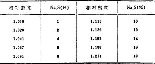 〔用途〕 1.脱毛 石灰液中加入硫化钠在OH-和SH-离子的共同作用下,角蛋白胱氨酸中的双硫键断裂: R-S-S-R+2Na2S→2R-Na+Na2S2 这使得毛、表皮与真皮的结合松弛而引起脱毛;在氢氧化钠溶液中或氯化钙溶液中加入硫化钠也起到同样脱毛作用。 2.干皮浸水助剂 在干皮水液中加入适量硫化钠,使溶液pH值升高,有利于皮中纤维间质的溶出,皂化一部分脂肪,使水容易渗入皮内;硫化钠的作用较氧化钠缓和,一般不会发生皮过度膨胀。 3.配制多硫化钠。 〔贮运使用注意事项〕 1.属于无机碱性腐蚀物品,应存放于通风处或石棉棚下。硫化钠的潮解性很大,暴露在空气中能吸收水分、二氧化碳、氧等,逐渐转化成硫代硫酸钠、硫酸钠及碳酸钠等,使硫化钠含量降低,故贮存时需将容器密封。 2.硫化钠对皮肤和眼睛有强烈的腐蚀性,操作时应穿工作服、戴口罩、防护镜、手套。与酸接触产生有毒的易燃性硫化氢气体,且硫化钠本身也能燃烧。故应与酸类、易燃物和强氧化剂等分开放置。 〔生产单位〕 硫化钠溶液浓度相对密度(18℃)对照表