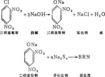 | 释义 | 硫化黑(BRN) 1.性质 硫化黑的旧称为青红光硫化青,又叫青红光硫化元,是硫化染料中的重要品种,是染料中产量最大的品种。染棉布后的坚牢度,浅色的日晒为四级,皂洗3~4级,干摩擦3级,深色的日晒为6级,皂洗3~4级,干摩擦3级,硫化墨虽色彩稍为萎暗,但是价格便宜,使用方便,并且有一定的坚牢度,故为广大人民所欢迎。它与硫化钠共同熬成膏状染料称为膏子青或煮青,可溶于水直接染色,使用方便。 2.制法 硫化黑是由二硝基甲苯经氢氧化钠水解成二硝基酚钠,再经多硫化钠的还原及加硫而制成。反应式如下: