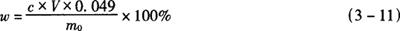 式中 c——NaOH标准溶液的浓度,mol/L V——消耗NaOH标准溶液的体积,mL m0——新取试样的质量,g 0.049——每毫摩 |