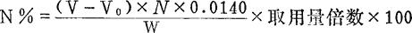 式中符号同前。V0为空白滴定的硫酸标准液毫升数。本操作中取用量倍数为 (五)注释 样品为硝酸铵、硝酸铵钙、硫硝酸铵时称样可0.1g,硝酸钾、硝酸钠可称0.2g,硝酸钙因其吸湿性强,可将称量及定容体积扩大,然后取部分试液测定。硝态氮测定样品不宜太多,否则不易还原完全,蒸馏也有困难。 |