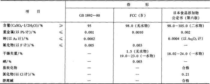 鉴别方法 向1g硫酸钙中加20mL 2.7mol/L盐酸、80mL水,摇匀过滤,滤液呈硫酸盐反应和钙盐反应。 1.硫酸盐反应 参见硫酸铝钾鉴别方法。 2.钙盐反应 参见磷酸三钙鉴别方法。 毒理学依据 1.GRAS FDA-21FCR 184.1230。 2.ADI 无需规定(FAO/WHO,1994)。 3.代谢 钙与硫酸根都是人体内正常成分,而且硫酸钙在水中溶解度低,在消化道内难以吸收,所以可认为硫酸钙无害。 使用 稳定和凝固剂。 1.使用注意事项 (1)本品对蛋白质凝固性缓和,所生产的豆腐质地细嫩,持水性好,有弹性。但因其难溶于水,易残留涩味和杂质。 (2)生产豆制品常用煅石膏,过量有苦味。另外应根据季节、浆温、水质来调整其用量。 2.使用范围及使用量 (1)我国《食品添加剂使用卫生标准》(GB 2760-1996)规定:用于面粉处理剂(作为过氧化苯甲酰的稀释剂)最大使用量为1.5g/kg;用于豆制品,可按生产需要适量添加。 (2)FAO/WHO(1984)规定:可用于酪农干酪及稀奶油混合物,用量为5g/kg(单用或与其它稳定剂及载体的合用量)。 (3)日本规定:最高使用量为1%或少于1%(以Ca计),或本品4.3%以下(本品1g相当于0.2328gCa)。 (4)实际使用参考: ①用于生产番茄罐头,参考用量为:片装,800mg/kg;整装,450mg/g(单用或与其它固化剂合用,以Ca计)。用于马铃薯罐头,可根据配方添加0.1%~0.3%。 ②生产豆制品常用磨细的煅石膏,参考用量为14~20g/L,过量有苦味。另外,季节、浆温、水质也影响其用量。一般夏季用量为大豆原料的2.25%,冬季为4.1%。浆温以80℃较为合适。 |