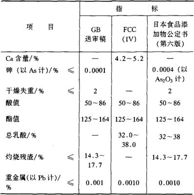 C48H86CaO12 相对分子质量 895.30 性状 本品为硬脂酰乳酸钙和少量其它有关酸所生成钙盐的混合物,白色至带黄白色的粉末或薄片状、块状固体,无臭、有焦糖样气味。难溶于冷水,稍溶于热水,加热强烈搅拌混合可完全溶解。易溶于热的油脂中,冷却则成分散状态析出。熔点44~51℃,HLB值为5.1。 制法 将乳酸加热浓缩为重合乳酸,加入硬脂酸和碳酸钙,边通惰性气体边加热至200℃进行酯化反应,将反应生成物制成钙盐。 质量标准