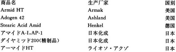 制法 由硬脂酸与氨反应而得。 性质 白色或淡黄褐色粉末。分子量283.5。氮含量>4.8%。酸值<2.5。碘值1~5。相对密度0.96左右。熔点98~103℃。沸点250℃(1.6kPa)。溶于热乙醇、氯仿、乙醚,难溶于冷乙醇,不溶于水。 用途 本品可作为聚氯乙烯、聚苯乙烯、脲醛树脂等塑料加工用的润滑剂和脱模剂,具有优良的外部润滑效果和脱模性。透明性和电绝缘性亦佳。用于硬质透明挤塑成型品时,一般用量为0.3~0.8份。但本品的润滑性不及硬脂酸,持效性也较短,热稳定性较差,有初期着色性。与少量高级醇(C16~C28)配合,可以克服上述缺点。本品在树脂中用量过大时易向制品表面析出,影响印刷性和透明性。本品还可作为聚烯烃的爽滑剂和薄膜抗粘连剂。也可作为天然橡胶和合成橡胶的内部脱模剂和润滑剂,改善胶料的加工性,提高颜料等其它助剂的分散效果,赋予制品良好的光泽。 毒性 本品无毒。美国(FDA)、德国、日本等许多国家许可其用于制做食品包装材料。 国内生产厂 北京化工厂 上海助剂厂 石家庄化工九厂 上海中华化工厂 国外生产厂