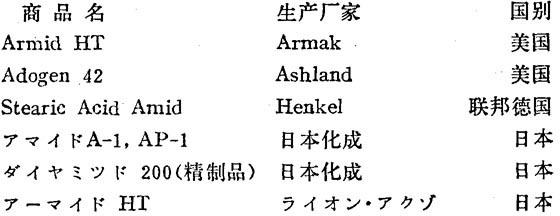 【释文】: 制法 由硬脂酸与氨反应而得。 性质 白色或淡黄褐色粉末。分子量283.5。氮含量>4.8%。酸值<2.5。。碘值1~5。相对密度0.96左右。熔点98~103℃。沸点250℃(12毫米汞柱)。溶于热乙醇、氯仿、乙醚,难溶于冷乙醇,不溶于水。 用途 本品可作为聚氯乙烯、聚苯乙烯、脲醛树脂等塑料加工用的润滑剂和脱模剂,具有优良的外部润滑效果和脱模性。透明性和电绝缘性亦佳。用于硬质透明挤塑成型品时,一般用量为0.3~0.8份。但本品的润滑性不及硬脂酸,持效性也较短,热稳定性较差,有初期着色性。与少量高级醇(C16~C18)配合,可以克服上述缺点。本品在树脂中用量过大时易向制品表面析出,影响印刷性和透明性。本品还可作为聚烯烃的爽滑剂和薄膜抗粘连剂。也可作为天然橡胶和合成橡胶的内部脱模剂和润滑剂,改善胶料的加工性,提高颜料等其它助剂的分散效果,赋予制品良好的光泽。 毒性 本品无毒。美国(FDA)、联邦德国、日本等许多国家许可其用于制做食品包装材料。 国内生产厂 上海中华化工厂 国外商品名