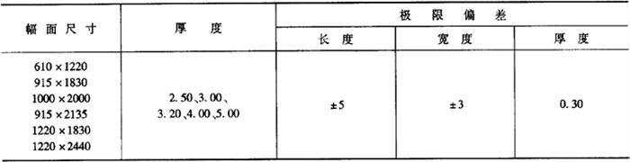 表4-65 硬质纤维板的名义尺寸与极限偏差mm