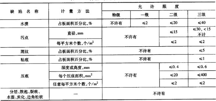 3)各级硬质纤维板的外观质量应符合表4-67规定。