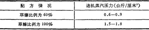 产量:Φ4600公升/时;Φ6800公斤/时;Φ81000公斤/时 主机电耗:14.0千瓦/时 吨料电耗:14.0千瓦/吨 (3)压制颗粒的工艺流程 粉状的原料秤量,清理后直接倒入进料机进料坑,经过输料管进入旋风分离装置,分离后进入卧式搅拌机。需要粉碎的原料经秤量、清理后送入粉碎机,粉碎后的饲料,由输料管经旋风分离装置进入卧式搅拌机,充分搅拌后,即可拉开搅拌机底部的输料管闸板,把配合饲料送入造粒机的料斗。进入造粒机的粉料,在螺旋输送轴的推动下,进入搅拌器与蒸汽拌和,然后送往造粒机的内腔压粒。从钢模挤压出来的产品是线状,需用割刀切割成所需的长度的颗粒饲料。这时颗粒饲料的含水量约在17-18%左右,再用斗式提升机将颗粒送入冷却器进行冷却,风冷后的颗粒送到振动筛筛选,此后所得颗粒即可予以称量、包装。 造粒机是整套设备中最主要的设备,由四大部分组成:即输送器、搅拌器、蜗轮减速器、造粒器。 造粒机的工作原理,当经过搅拌均匀的饲料由输料管送到造粒机上方料斗后,由输送器均匀地控制粉料进入搅拌器,粉料在搅拌器内和经过处理的干燥过热的蒸汽进行充分混合,使粉料得到均匀的加热,然后将半糊化后的混合粉料均匀地送入造粒器中。在内腔中粉料被刮粉器拌刮,均匀地铺在平模与辊轮之间,在平模与辊轮的强力挤压下,粉料不断地被挤进平模模孔压缩成形,然后呈长圆柱形从模孔下方挤出,被装在平模下面的二把切刀割断,变成长10-20毫米的颗粒落入盛料筒内,最后被刮料板送出造粒机出料口,进入提升机。 使用前准备: ①检查电源电压,当电压低于360伏时不宜开车。 ②检查辊轮与平模间的间隙,应控制在0.1-0.3毫米之间。 ③检查蒸汽压力是否符合要求,压力为3-5公斤/厘米2之间时开车最为有利。 ④弄清粉料的配方比例,以便于开车时,正确掌握蒸汽的用量,含油率低的粗纤维比例大,对蒸汽的需要量也大。其数据可参考表5-6。 表5-6 粉料配方比例及对蒸汽的需要量
