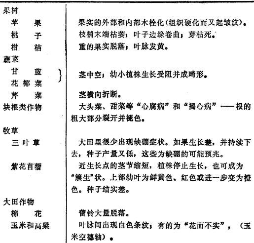 5.防治措施 当作物需要硼的时候,应该将硼少量多次地施于土壤,避免中毒。 大多数作物,对于叶面喷施可溶性硼酸盐没有反应。但是,那些最可能缺硼的作物(甜菜、大头菜)却有反应。严重缺硼时,最好的办法是施于土壤兼之叶面喷施。 土壤,植株和灌溉水的分析是决定硼的有效性、硼的用量与需要的最好方法。 硼的施用量因作物而不同: ①三叶草,每公顷大约需硼0.5公斤,即每公顷施用5公斤硼砂。 ②紫花苜蓿,每公顷需用2-3公斤硼,作为纠正缺硼的用量。 ③各种大田作物,有的每公顷需硼达到4.5公斤,而一些白菜型作物,需硼可以多到每公顷15-20公斤。 硼作为过磷酸钙的标准添加物有二种浓度,即含硼0.4%和0.8%,并只在需要用的时候混合。在牧草需硼的地方,通常每公顷施用加0.4%硼的过磷酸钙125公斤。为满足紫花苜蓿硼的需要,每公顷可用0.8%的含硼过磷酸钙375公斤。 |