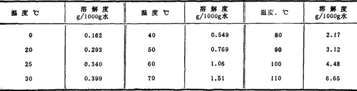 水解平衡常数 20℃ 1.5×10-13~3×10-13; 晶格常数 18℃ a=0.4776nm,b=0.7250nm,c=0.9771nm; 结晶半径 0.21nm; 共价半径 0.1334nm; 在水中溶解度;