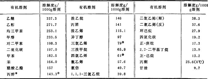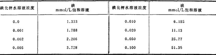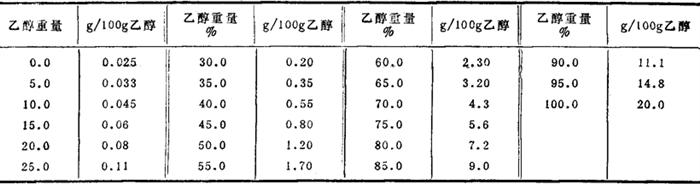 注:①每升溶液中的克数。 ②碘在无水丙醇中15℃时的溶解度. 在不同浓度乙醇水溶液中的溶解度,15℃: