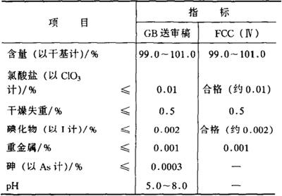 | 释义 | 碘酸钾 编码 GB 16.000;INS 917 化学结构 K1O3 相对分子质量 214.00 性状 为白色结晶性粉末,无臭,熔点560℃,部分分解。相对密度3.89。1g溶于约15mL水中,不溶于乙醇,水溶液(1+20)的pH为5~8。 制法 在酸性溶液中,加入氯酸钾,再缓缓加入碘,生成酸式碘酸钾,再加入氢氧化钾中和至pH 9~10,过滤、洗涤、干燥制取。 质量标准
