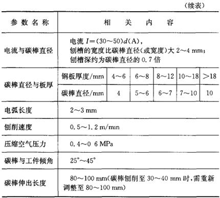 表3.6-1为碳弧气刨的工艺参数供使用时参考。