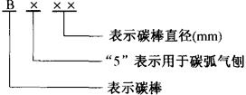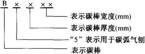 | 释义 | 碳弧气刨用碳电极 碳弧气刨用的碳棒又称碳焊条、碳电极或碳精棒。 碳棒型号表示方法如下: (1)圆形碳棒型号为: