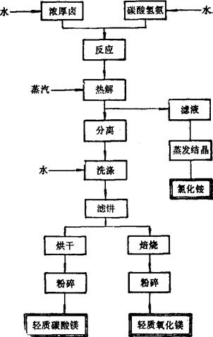 碳氨法制取轻质碳酸镁和轻质氧化镁的工艺流程见图6-5-9。
