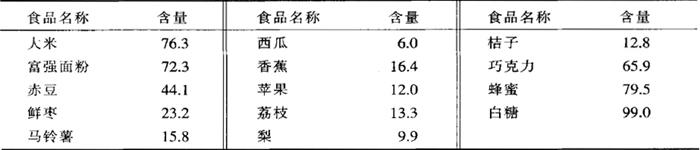 | 释义 | 碳水化合物 (一)功能意义 碳水化合物(carbohydrate)因其氢和氧的比例和水一样,故名。碳水化合物也称糖类(saccharide),是由碳、氢、氧三种元素组成的一大类化合物。自然界中的绿色植物利用水和空气经光合作用(photosynthesis)产生糖类,并将糖类贮存于叶、茎和种子内。通过光合作用可制造出各种有机物,其中最主要的是碳水化合物。 碳水化合物被认为是维持动植物生命最经济、最广泛的能量来源,也是体内生理作用过程中主要的能量来源。碳水化合物提供能量的特点是:在总能量中所占比例最大,提供能量快而及时;氧化的最终产物为二氧化碳和水,对人体无害;神经系统活动所需要的能量,仅能由葡萄糖提供。可见,碳水化合物对供能的重要意义。据知每g碳水化合物可产生17.15kJ(4.1kcal)的能量,其分解后的产物是二氧化碳和水,也很容易排出体外。虽然碳水化合物、蛋白质和脂肪三者在体内都能产生能量,但人体能量的来源应以碳水化合物为主,如果以脂肪为能量的主要来源,在代谢过程中则可能因氧化不全而产生酮体;若以蛋白质作为机体的主要能量来源,在代谢过程会产生胺一类的有害物质,它们对机体都不利。通常认为,只有碳水化合物供给能量不足时,才动用体内储存的脂肪和蛋白质。 糖类也是组成机体的一种重要物质,如糖蛋白(glucoprotein)是细胞膜的成分之一;碳水化合物也是糖蛋白、核蛋白(nucleoprotein)、黏膜蛋白(mucoprotein)和糖脂(glucolipide)不可缺少的成分。糖原(glycogen)还具保护肝和解毒的作用。当肝内糖原充足时,可使肝脏对致病微生物感染引起的毒血症和某些化合物如酒精等的解毒功能增强,从而起到护肝的作用。 (二)分类 按其化学结构可分为单糖、双糖和多糖。 (1)单糖(monosaccharides)是最简单的糖,如葡萄糖(glucose)、果糖(fruc tose)和半乳糖(galactose)等。葡萄糖存在于植物食物中,果糖存于水果中,而半乳糖是乳糖的分解产物,存在于动物的乳汁中。这些糖类可直接被机体吸收和利用。 (2)双糖(disaccharides)是由两个单糖分子结合而成,常见的有蔗糖(su crose)、乳糖(lactose)和麦芽糖(maltose)。蔗糖在甜菜中含量很高,人们日常食用的红糖、白糖等都是蔗糖。乳糖是哺乳动物乳中主要的糖,它是葡萄糖和半乳糖的缩合物,其甜度只有蔗糖的0.17倍。麦芽糖由2分子葡萄糖缩合而成,谷类种子萌芽时含量较多,尤其在麦芽中含量最高。 (3)多糖(polysaccharides)由许多单糖分子聚合而成,主要由葡萄糖分子组成,但无甜味。营养学上具有重要作用的多糖有三种,即糖原(glycogen)、淀粉(starch)和纤维(fiber)。糖原又称动物淀粉,在肝脏和肌肉中合成并贮存,肝脏中贮存的糖原可维持正常的血糖浓度;肌肉中的糖原可提供机体运动所需要的能量,尤其是高强度和持久运动时的能量需要。但食物中的糖原含量很少,因此它不是有意义的碳水化合物的食物来源。淀粉是由许多葡萄糖组成的并能被人体消化吸收的植物多糖,主要贮存在植物细胞中,尤其是根、茎和种子细胞中,薯类、豆类、谷类和坚果类含有丰富的淀粉,是人类碳水化合物的主要食物来源。糊精(dextrin)是淀粉的中间产物,糯米中含量较多。纤维是指存在于植物体中不能被人体消化吸收的多糖,但由于其特有的生理作用,营养学上仍将它作为重要的营养素。存在于食物中的各类纤维统称为膳食纤维(dietary fiber),有关膳食纤维的内容将在后面单独介绍。 (三)膳食来源 糖类是人体重要的供能营养素,一般认为,成人每天摄入糖类提供的能量应占总热量的55%~65%,但必须顾及饮食习惯和生产、生活水平等诸多因素。在幼儿膳食中糖类应占总热量的55%~60%,而婴儿只占50%即可。 食物中含糖类最多的是谷类、根茎类、薯类等,它们含有大量的淀粉和少量的单糖或双糖等。常见食品中的碳水化合物含量见表8-4,供参考。 表8-4 常见食品中碳水化合物含量(每100g食部中含量,g)