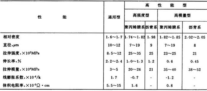 | 释义 | 碳纤维 【释文】: 碳纤维是由元素碳构成的一类纤维材料。它可由几种方法制造,目前使用最广泛的是有机纤维高温碳化法,即在隔绝空气和水分的情况下将有机纤维加热至700~1000℃使之分解碳化而成。若将其继续加热至2760℃左右还可形成石墨纤维。 碳纤维的发展可追溯到100年前,早在1880年爱迪生就首次制出了碳丝,并将它们用作灯泡的灯丝。但碳纤维的制造技术发展却十分缓慢,直到1959年才生产出真正纺织形式的碳纤维,近年来该类纤维得到了较快发展。 工业上用于制造碳纤维的有机原料主要是人造丝、聚丙烯腈和沥青三大类,从性能和经济性上看,后两种原料的发展前景更为广阔。按照碳纤维的形状可分为连续丝状的长纤维和长度为50mm以下的短纤维。按照碳纤维的性能,特别是模量特性,可将其分为通用型(亦可称为低模量型)和高性能型两大类。前者根据其碳化温度的高低有石墨质和碳素质之分,后者又可分为高强度型和高模量型两种。表14-8为通用型和高性能型碳纤维的性能比较,表14-9为碳纤维和石墨纤维的性能。 表14-8 通用型和高性能型碳纤维的性能