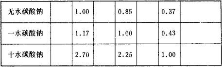 Na2CO3 分子量105.99 Na2CO3·H2O 分子量124.0 Na2CO3·7H2O 分子量232.0 Na2CO3·10H2O 分子量286.14 又称纯碱、苏打、洗涤碱、苏打灰、炭养粉等。 特性:无水物是白色粉末或颗粒。比重2.532。熔点851°。易溶于水,水溶液呈强碱性。不溶于乙醇、乙醚。吸湿性强,易于潮解而结成硬块,并能从潮湿空气中逐渐吸收二氧化碳而成碳酸氢钠。一水物是白色斜方晶体。有潮解性。热至100°失水。能溶于水,不溶于乙醇、乙醚,水溶液呈强碱性。性质相对比较稳定。七水物一般不常见。十水物是无色单斜晶体。比重1.458。熔点34°,热至33.5°时失水。能溶于水,不溶于乙醇。露置空气中易风化而成一水物粉末。 用途:用于显影促进剂;漂白、坚膜、漂定、稳定、前浴中,主要调整pH值。铁印214