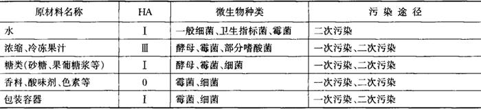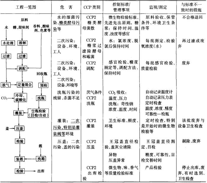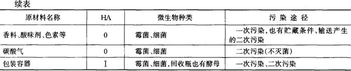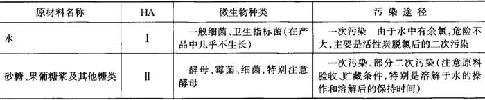 表7-1-11 碳酸饮料的危害分析(HA) [不杀菌的碳酸饮料定为Ⅱ类(C、F,有时D、E)]