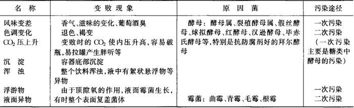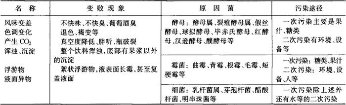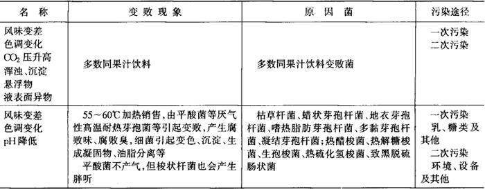 表7-1-10 中性饮料(低酸性饮料)变败及其原因菌