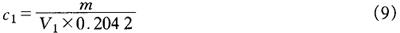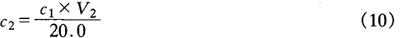 式中 c1——氢氧化钠标准滴定溶液之物质的量浓度,mol/L m——苯二甲酸氢钾的质量,g V1——滴定时消耗氢氧化钠标准滴定溶液的体积,mL 0.2042——与1.00mL氢氧化钠标准滴定溶液[c(NaOH)=1.000mol/L]相当的以克表示的苯二甲酸氢钾的质量。 8.0.25mol/L盐酸标准滴定溶液的制备及标定 (1)配制 取21.0mL的盐酸(GB622)于1.000mL容量瓶中,用水稀释至刻度,摇匀。 (2)标定 取20.0mL盐酸溶液于250mL锥形瓶中,加60mL不含二氧化碳的水和3滴酚酞-百里酚酞指示液,用0.25mol/L氢氧化钠标准滴定溶液滴定,近终点时加热锥形瓶内的溶液至80℃,继续滴定至溶液呈淡紫色。 计算:盐酸标准滴定溶液的浓度按式(10)计算: