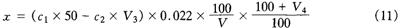 式中 x——样品中二氧化碳的含量,%(质量分数) c1——氢氧化钠标准滴定溶液之物质量的浓度,mol/L c2——盐酸标准滴定溶液之物质量的浓度,mol/L 50——加入三支吸收管中0.25mol/L氢氧化钠标准滴定溶液的体积,mL V3——滴定时消耗0.25mol/L盐酸标准滴定溶液的体积,mL V——蒸馏时取试液的体积,mL V4——每100mL汽水中加入50%氢氧化钠溶液的上层清液的体积,mL 0.022——与1.00mL氢氧化钠标准滴定溶液[c(NaOH)=1.000mol/L]相当的以克表示的二氧化碳的质量 当两次测定结果符合允许差时,取两次测定结果的算术平均值作为结果,精确到0.001%。 (八)允许差 两次测定结果之差不得超过平均值的5.0%。 (九)其他 本法与检压器法测定值之间的换算关系式(12):