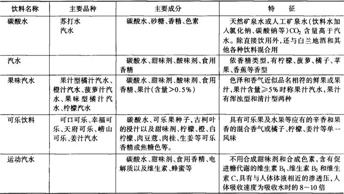 | 释义 | 碳酸饮料主要品种 碳酸饮料的主要品种参见表2-3-4。世界碳酸饮料三大品种是可口可乐、健怡可乐(Diet coke)和橙汁汽水。香型是碳酸饮料产品的重要特征。世界碳酸饮料三大香型是可乐、橙和柠檬酸橙。近年来,美国软饮料主要品牌有可口可乐(Coca-cola)、百事可乐(Pepsi-cola)、健怡(无糖)可乐(Diet coke)、激浪(Mountain dew)、雪碧(Sprite)、胡椒博士(Dr.pepper)、无糖百事(Diet pepsi)和七喜(7Up)等。 表2-3-4 碳酸饮料主要品种