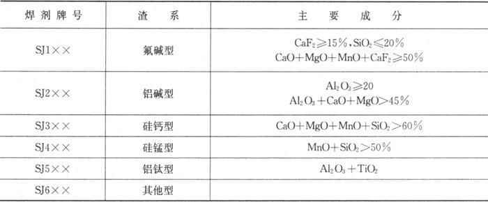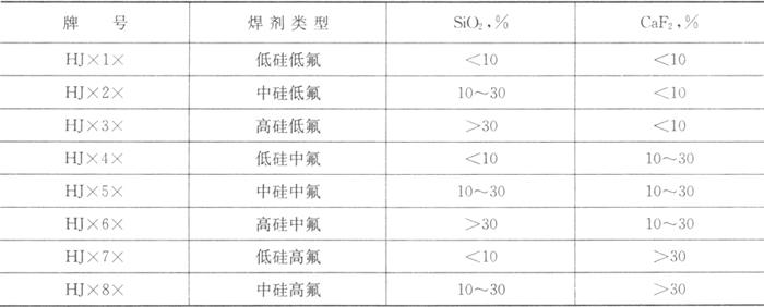 表1.5-10 焊剂牌号中SiO2和CaF2的含量的划分