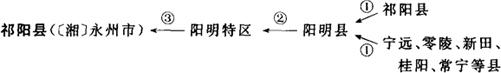 位于东经111°35′~112°14′、北纬26°02′~26°51′之间。 因县境处于祁山阳面而得名。 ①1912年称祁阳县;1928年析祁阳、宁远、零陵、新田、桂阳、常宁县部分地区设阳明县;②1931年改为阳明特区。③1949年复称祁阳县。 参见192页“宁远县”、305页“祁东县”。 |