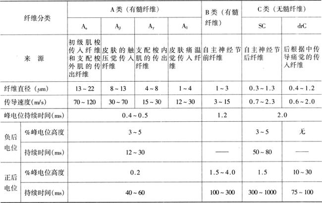 表4-2 神经纤维的分类