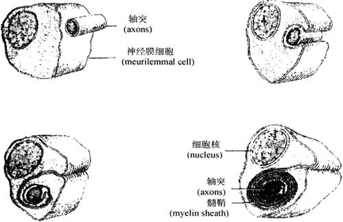图2-49 周围神经纤维髓鞘形成模式图