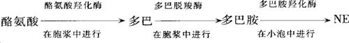 | 释义 | 神经递质 神经递质(neurotransmitter)是指在化学性突触传递(chemical synaptic transmission)过程中,传递信息的化学物质。它是在兴奋到达突触时,由突触前膜(presynaptic membrane)释放,越过突触间隙(synaptic cleft),到达突触后膜(postsynaptic membrane)并与相应的受体(receptor)相结合而产生效应。 神经系统中含有多种化学物质,只有符合一定条件的化学物质才能被确认为神经递质。这些条件规定是:①在突触前神经元内含有合成该递质的前体物质(precursor)与合成酶(synthetase)系,因而能合成该递质;②在神经末梢内的突触小泡(synaptic vesicle)中可以贮存该递质,当冲动抵达末梢时,突触小泡内的该递质能释放(release)入突触间隙;③该递质通过扩散越过突触间隙作用于突触后膜受体(receptor)而发挥其生理作用;④突触部位有该递质降解(degradation)的酶系或再摄取(reuptake)该递质的环节;⑤用该种递质的拟似剂(mimic)或该递质的受体阻断剂(blocker)可加强或阻断该递质的作用。 (一)神经递质的种类 目前已知的神经递质(neurotransmitters)有近百种,大体上可分为五类,包括乙酰胆碱(acetylcholine)、单胺类(monoamines)、氨基酸类(amino acids)、神经肽类(neuropeptides)及其他。 1.中枢神经递质 存在于中枢神经系统的递质,有以下四类: (1)乙酰胆碱(acetylcholine,ACh):凡具有合成、释放ACh功能的神经元称为胆碱能神经元(cholinergic neuron)。胆碱能神经元分布在脊髓前角、丘脑后部腹侧的特异投射系统(specific projection system)、脑干网状结构上行激动系统(ascending excitatory system)、大脑边缘系统(limbic system)、纹状体(striatum)以及大脑皮质(brain cortex)等不同部位,是一种十分重要的神经递质,参与机体的运动、感觉以及内脏活动的调节,并参与觉醒、睡眠、学习等多方面的生理活动。 (2)单胺类(monoamines):这类递质包括去甲肾上腺素(norepinephrine,NE)、肾上腺素(epinephrine,E)、多巴胺(dopamine,DA)和5-羟色胺(5-hydroxytryptamine,5-HT)。其中去甲肾上腺素能神经元主要位于脑桥的蓝斑(locus ceruleus)以及延髓网状结构(medullary reticular system)的腹外侧部分,其上行纤维投射到大脑皮层等部位,兴奋大脑皮层的神经元,并维持大脑皮层的觉醒。此外,还参与觉醒活动的调节。多巴胺主要由中脑黑质(nigra substantia)的神经元合成,沿黑质-纹状体系统(nigra-striatum system)投射,调节躯体运动。脑内多巴胺释放减少,将引起震颤性麻痹(Parkinson’s discase)。5-羟色胺能神经元位于中缝核(raphe nuclei)内,其上行纤维投射到边缘前脑、大脑皮层的部位。中枢5-HT与睡眠、情绪反应有密切关系。 (3)氨基酸类(amino acids):这类递质包括γ-氨基丁酸(γ-aminobutyric acid,GABA)、谷氨酸(glutamate,Glu)、甘氨酸(glycine,Gly)和天门冬氨酸(aspartate,Asp)。GABA在中枢神经系统中,主要作为抑制性递质(inhibitor transmitter)参与突触后抑制。GABA在参与突触前抑制时,则起兴奋作用。Gly主要存在于脊髓,也是一种抑制性递质,参与躯体运动的调节。Glu和Asp则为兴奋性递质,广泛分布于中枢神经系统中。 (4)神经肽类(neuropeptides):现在已知的神经肽又分为以下几类: a.阿片肽(opioid peptides):包括脑啡肽(enkephaline)、内啡肽(endorphin)、强啡肽(dynorphine)等。 b.脑肠肽(brain-gut peptides):一些原先存在于消化管壁上的激素,现在发现在神经系统中也有。包括P物质(substance P)、胃泌素(gastrin)、胆囊收缩素(cholecystokinin,CCK)、胰高血糖素(glucagon)、促胰液素(secretin)、血管活性肠肽(vasoactive interstinal polypeptides,VIP)等多肽。 c.下丘脑调节性肽:促甲状腺激素释放激素(thyrotropin releasing horrnone,TRH)、生长抑素(somatostatin,SST)等。 近十余年来,神经肽的发现不断增多与深化,取得了长足进展,同时提出了以下新的概念。 a.神经内分泌(neuroendocrine):一些神经元除了能释放一些经典的递质外,同时还具有内分泌功能。例如最早发现的下丘脑视上核的一些肽能神经元分泌的血管升压素(vasopresin)和催产素(oxytocin)。相继又发现下丘脑另一些肽能神经元分泌黄体生成素释放激素(luteinizing hormone releasing hormone,LHRH)和生长抑素(SST)以及促肾上腺皮质激素释放激素(corticotropin-releasing hormone,CRH)。近代发现的脑肠肽均属这一概念之内。 b.递质共存(coexistence of transmitters):过去认为一种神经纤维只释放一种神经递质。这种观念被视为固定不变的法则。因此,将释放ACh的神经纤维称为胆碱能纤维(cholinergic fiber),将释放NE的神经纤维称为去甲肾腺素能纤维(norepinephrinergic fiber)。后来,随着对神经纤维的深入研究,发现一个神经元内可以有两种或两种以上的递质存在。例如5-HT与P物质共存(coexistance),颈上神经节中释放NE的神经元可同时释放神经肽Y(neuropeptide Y,NPY)。递质共存现象尤以经典的递质与肽类递质共存现象较为普遍。递质共存的生理意义较为复杂,这就是近年来提出的神经系统的化学编码(chemical coding)的概念。例如一种能释放二种或三种神经递质的神经纤维,可以采取空间上的编码方式(1、3;1、2;2、3)释放递质,也可以在时间上进行编码,即不同时间释放的递质的先后次序不同。各种编码含的信息也不相同。 2.外周神经递质(peripheral neurotransmitter) 主要有ACh和NE。此外,在胃肠中还发现有嘌呤类和肽类外周神经递质。这将在本章中“自主神经系”一节给以介绍。 (二)神经递质的代谢 1.合成(synthesis) 一些经典递质(如ACh和NE)是在神经末梢合成,而肽类(peptides)则是在胞体合成
