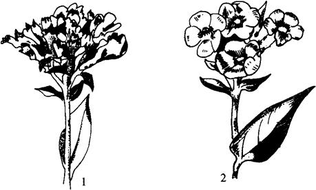 图7-13 福禄考花绿病 1.病花 2.正常花 【病原】 为类菌质体MLO 【发病规律】 通过嫁接和叶蝉传播蔓延。 【防治方法】 拔除病株。福禄考生长期,防治叶蝉,减少传播。 |