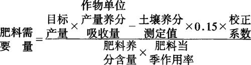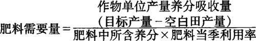 (2)地力差减法。地力就是土壤肥力,地力产量就是空白田产量,作物所吸收的养分,全部来自土壤。地力差减法就是目标产量减去地力产量,就是施肥后增加的产量,肥料需要量可按下列公式计算: