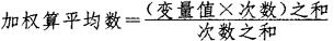 加权算术平均数:当每个变量值出现的次数不相同时,就要编制分配数列。这时,计算平均数就不能只将各组变量值平均,而要结合次数计算加权算术平均数。次数就是权数。其计算公式是: