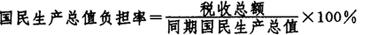 2.国民生产总值负担率。 国民生产总值负担率是指在一定时期内国家的税收收入总额占同期国民生产总值的比率,其公式为:
