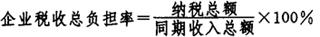以上两个比率又称宏观税率,它反映了在一定时期内国家对国民收入或社会产品的总体占有水平,它是国家之间进行总体税负比较的重要指标。 (二)纳税人税收负担水平的衡量 它是从纳税人角度考核税收负担水平的。它能具体反映出各类纳税人的税负状况,是国家制定税收制度的重要依据。其具体指标主要有:企业税收总负担率、企业收益负担率、企业净资产负担率、企业留利税收负担率、个人收入负担率等指标。 1.企业税收总负担率。 企业税收总负担率是在一定时期内企业所缴纳的各种税款的总额与同期企业各项收入总额的比率。其公式为: