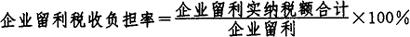 企业净产值税收负担比率反映了在一定时期内企业净产值中负担国家税收的状况。 4.企业留利税收负担率。 企业留利税收负担率是在一定时期内企业留利实纳税额合计数与企业留利之间的比率。其公式为: