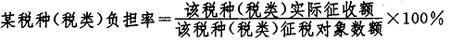 此比率反映在一定时期内个人收入中负担国家税收的状况,也体现了国家参与个人收入分配的水平和程度。 (三)对某一税种或税类的负担衡量 从税种或税类的角度考核分析税收负担水平,可以了解到某类税收对其调节对象的调节程度,以及其调节对象的承受状况。从而可以反映出国家税收对具体某类税种的调节水平。 税种或税类负担比率是指一定时期内国家实际征收入库的某种或某类税收收入总额占该税种或税类征收对象数额或数量的比率,其公式为: