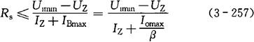 式中 Rmax——限流电阻Rs的上限值(Ω); U1min——稳压电路最小输入电压(V); UZ——稳压管的稳定电压(V); IZ——稳压管的稳定电流(A); ILmax——最大负载电流(A)。 ③限流电阻Rs的额定功率