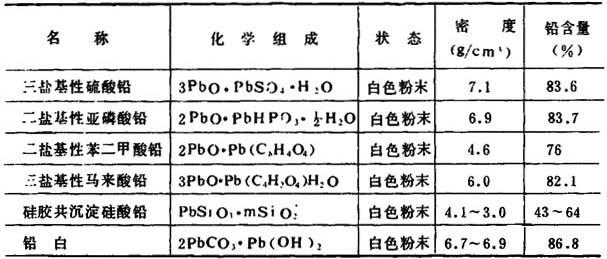 | 释义 | 稳定剂的分类 聚氯乙烯的稳定剂可分为铅盐类、金属皂类、有机锡类、复合稳定剂、紫外线吸收剂以及其它辅助稳定剂。 (一)铅盐类稳定剂 铅盐类稳定剂的稳定作用较强,而且价格低廉,故应用广泛。但铅盐有毒,不能用于接触食物的制品。一般也不能制得透明的制品,且易被硫化物污染而生成黑色硫化铅。主要的铅盐类稳定剂见表2-2-1。 表2-2-1 主要铅盐稳定剂
