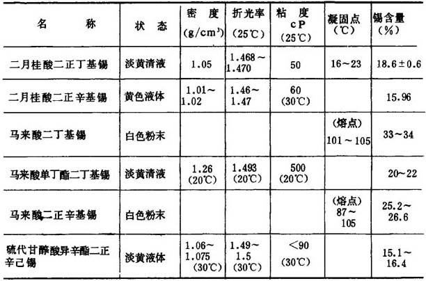 (三)有机锡稳定剂 这类稳定剂的品种很多,但其化学成分大多是二丁基二辛基等烷基有机锡。三烷基锡剧毒,不能广泛使用,单烷基锡现已淘汰。 有机锡稳定剂有良好的耐热性和透明性,可单独使用,也可与金属皂类稳定剂并用。由于用量少,所以,虽然价贵,在聚氯乙烯稳定剂中仍占重要地位。 在稳定过程中,有机锡与氯化氢生成的二丁基氯化物,可完全溶解于聚氯乙烯及增塑剂中,且不会引起聚氯乙烯树脂的分解。 从热稳定性来说,有机锡有防止变色的作用,如果与其它助稳定剂并用得当时,则可与钡—镉、环氧酯亚磷酸酯、酚类抗氧剂的并用配方匹敌。马来酸有机锡比羧酸有机锡好得多,当和受阻酚抗氧剂并用时,其初期热稳定性和耐候性优越。 从综合性能来说,硫醇有机锡比其它稳定剂好,特别是β硫醇酸、酯、铜、醇有机锡等更为有效。二丁基锡和二辛基锡是防止变色的最好稳定剂,当用量为0.25~0.75份时就有稳定作用,但它易使物料粘附在螺杆、机头、辊筒等上面,所以必须与适当的润滑剂并用。 (四)复合稳定剂 复合稳定剂包括: ①以金属皂类或盐类为基础的液体复合物。 ②上述基础的固体复合物。 ③以有机锡稳定剂为基础的复合物。 其中以第一类最为常用,主要的此类稳定剂见表2-2-7。 (五)紫外线吸收剂 紫外线吸收剂应具备下列条件: 表2-2-3 主要有机锡稳定剂