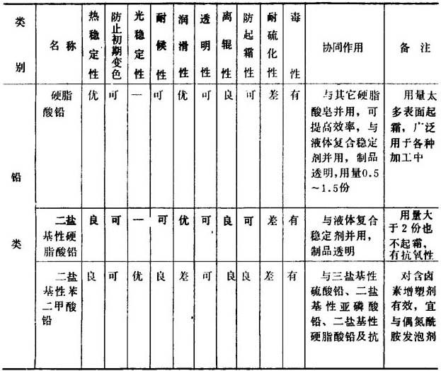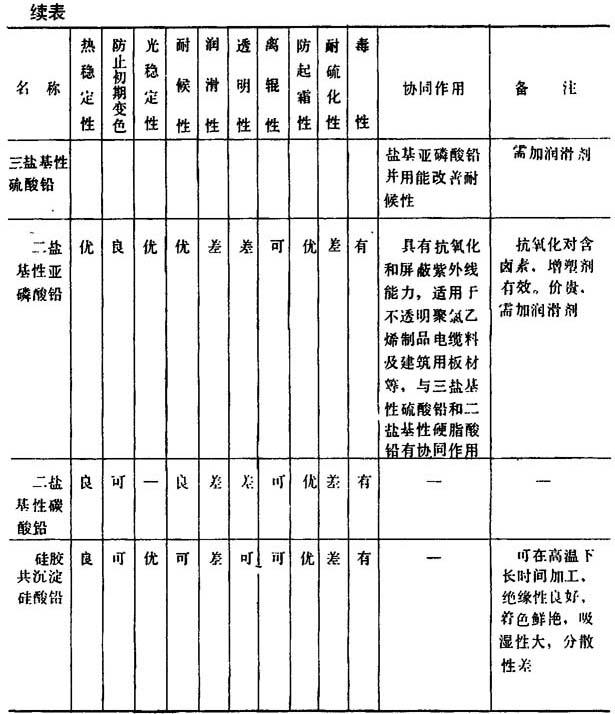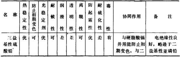 表2-2-8 主要铅盐类稳定剂的性能