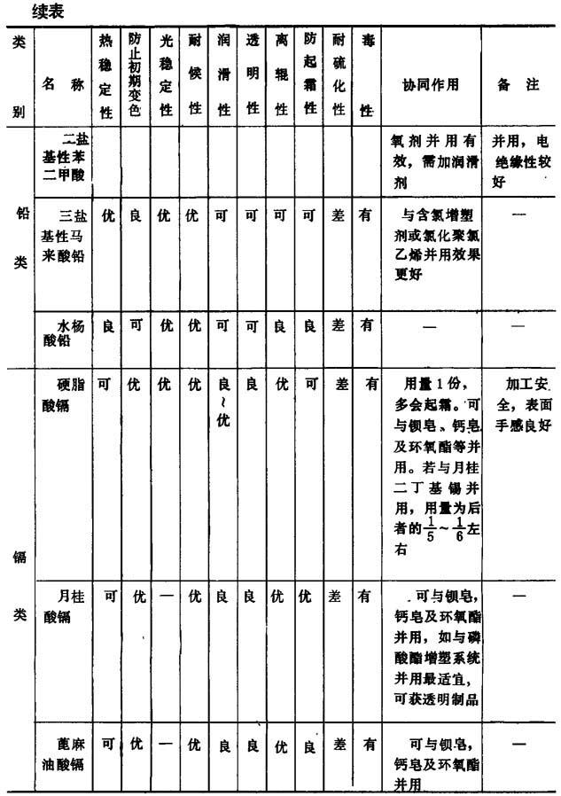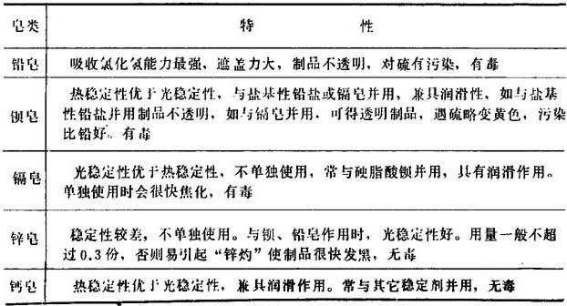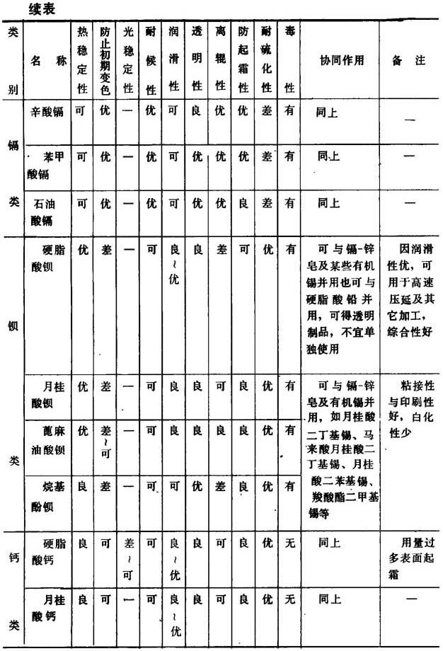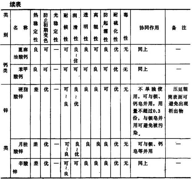 表2-2-9 金属皂类稳定剂的一般特性