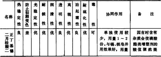表2-2-11 主要有机锡稳定剂的特性