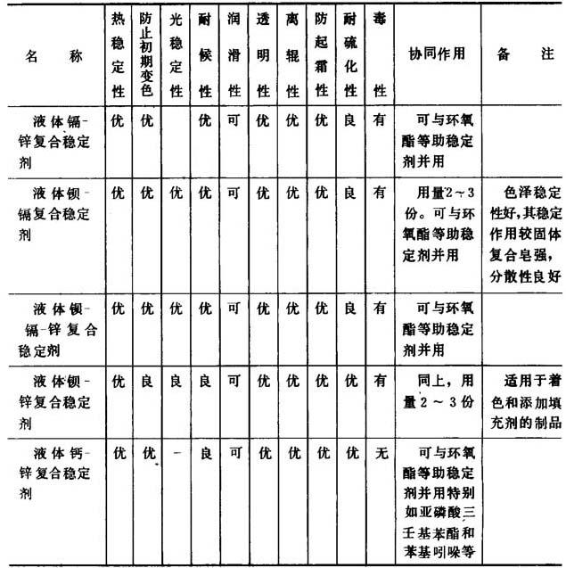 表2-2-12 主要液体复合稳定剂的性能