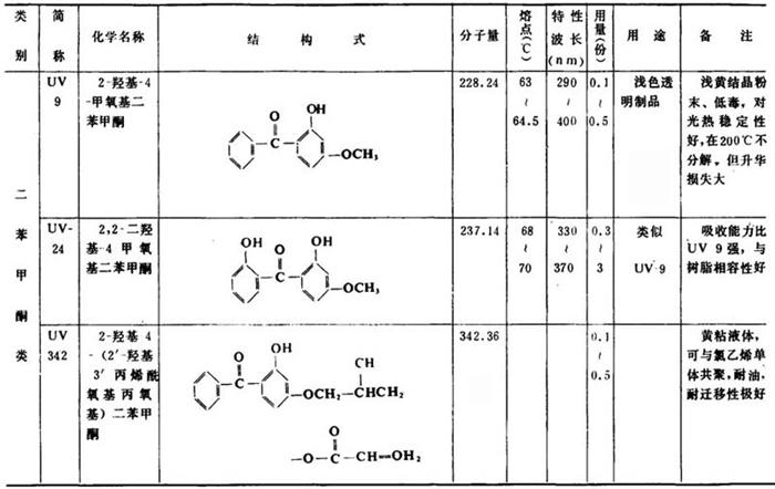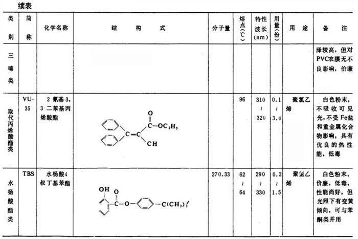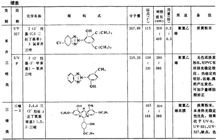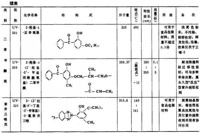 表2-2-13 主要紫外线吸收剂的特性与应用
