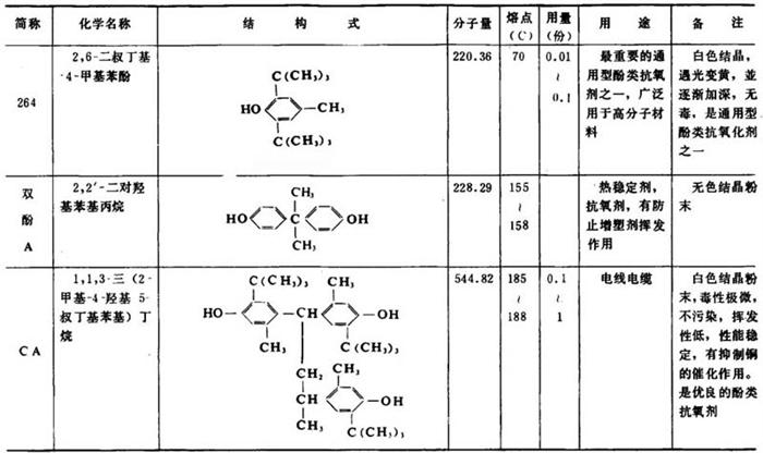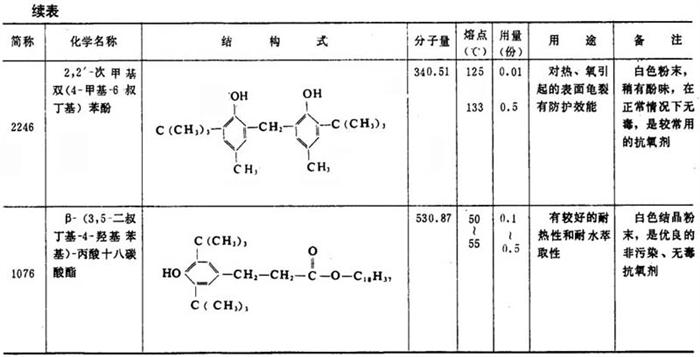 表2-2-14 主要抗氧剂的性能与应用