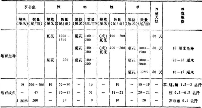 由于各类稻田的生态条件不同,水稻栽培技术不同,稻田养鱼的放养量也有较大差异,现将一般掌握的放养数量介绍如表2-110,表2-111。